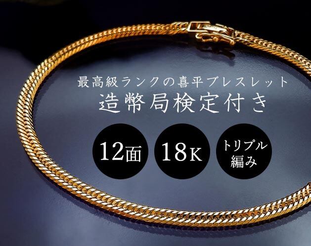 18金刻印付 12面トリプルカット喜平ブレスレット